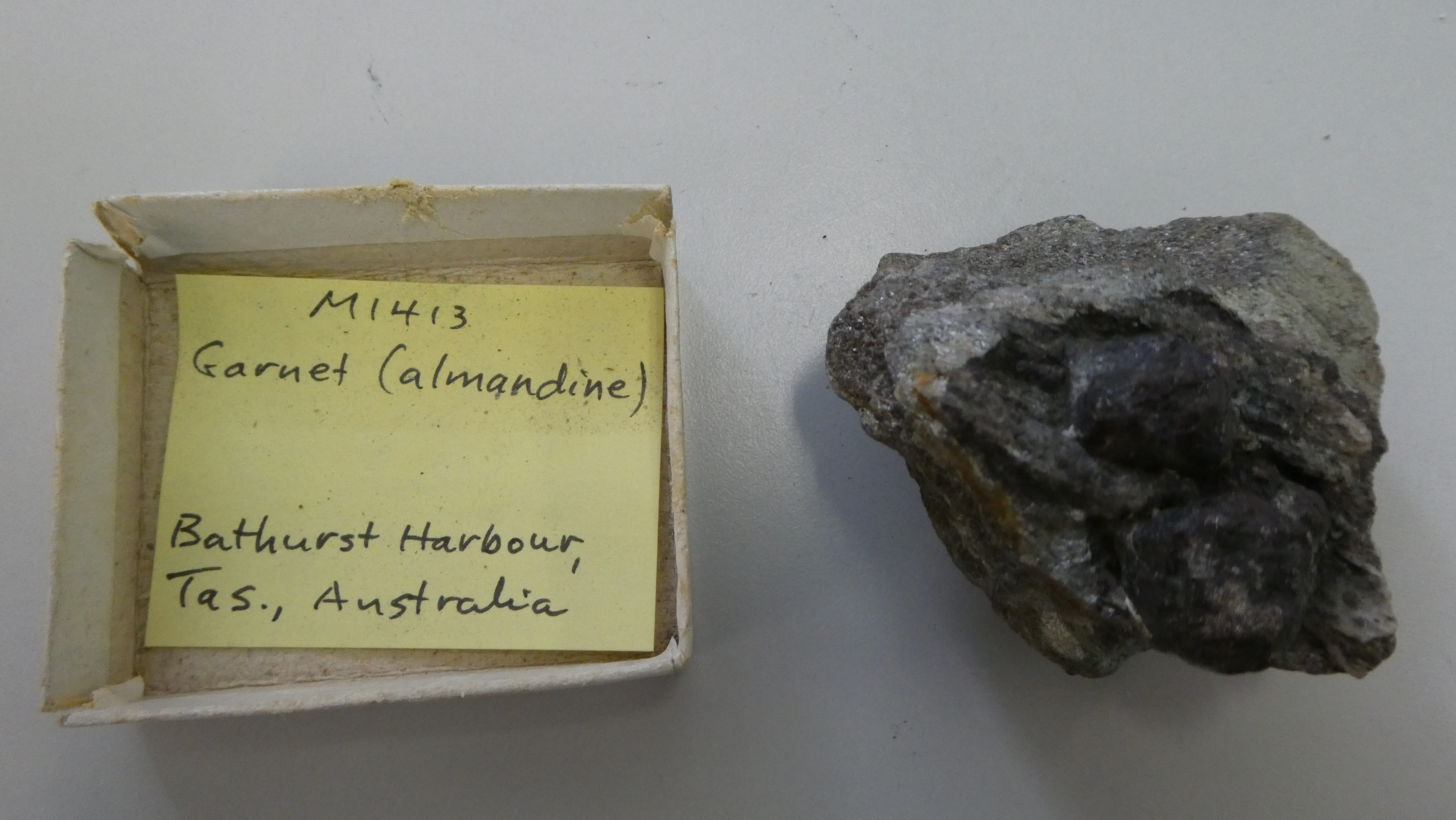 Image of Albite (var. Ca), Ankerite, Augite, Forsterite (var. Fe), Ilmenite, Montmorillonite and Sanidine in specimen 'M0834 Albite / Augite / Sanidine' [CSIRO].