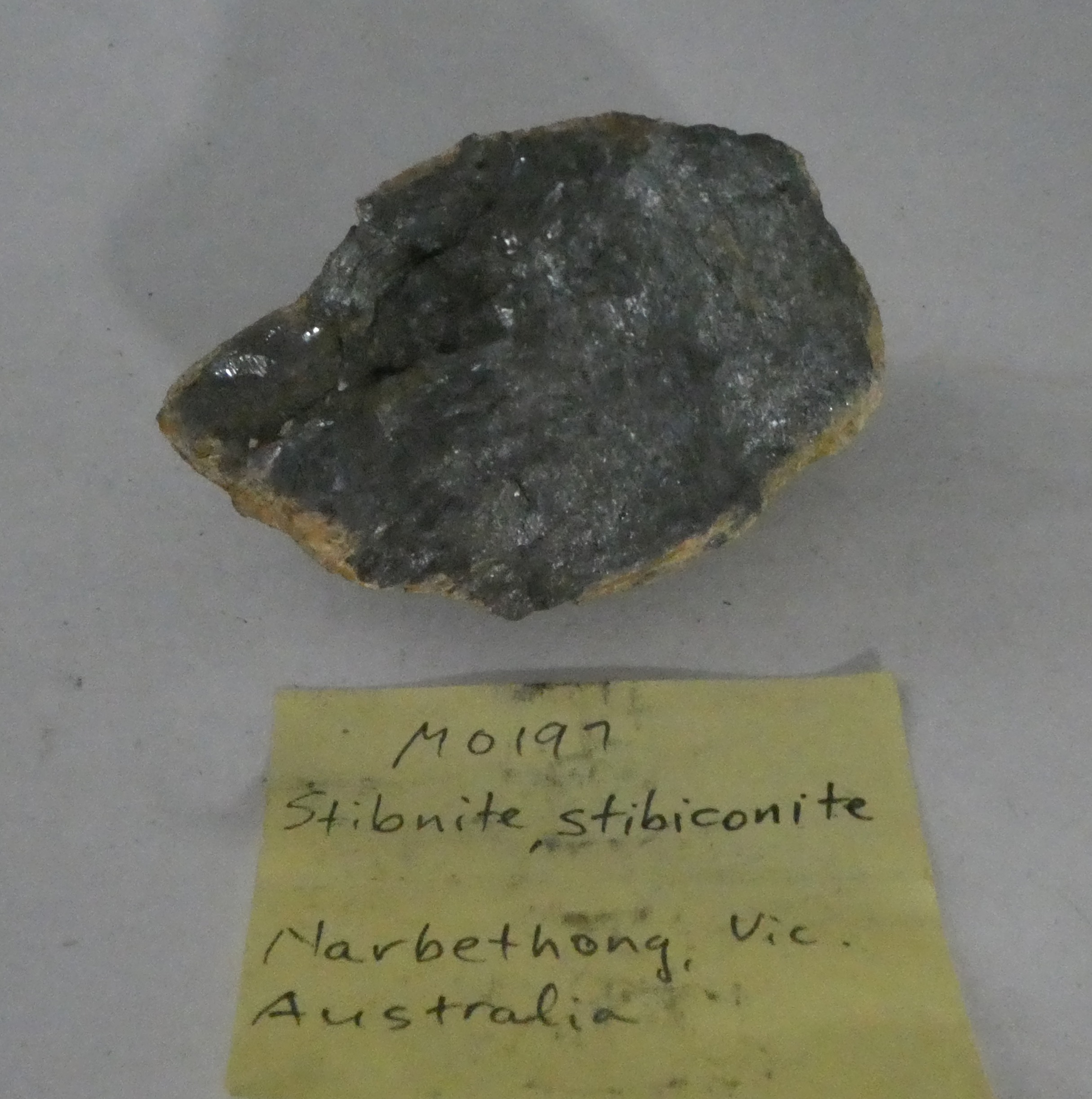 | M0197 Stibnite | CSIRO | Quartz, Senarmontite, Stibiocolumbite (2.9%), Stibnite | 2.9 | |