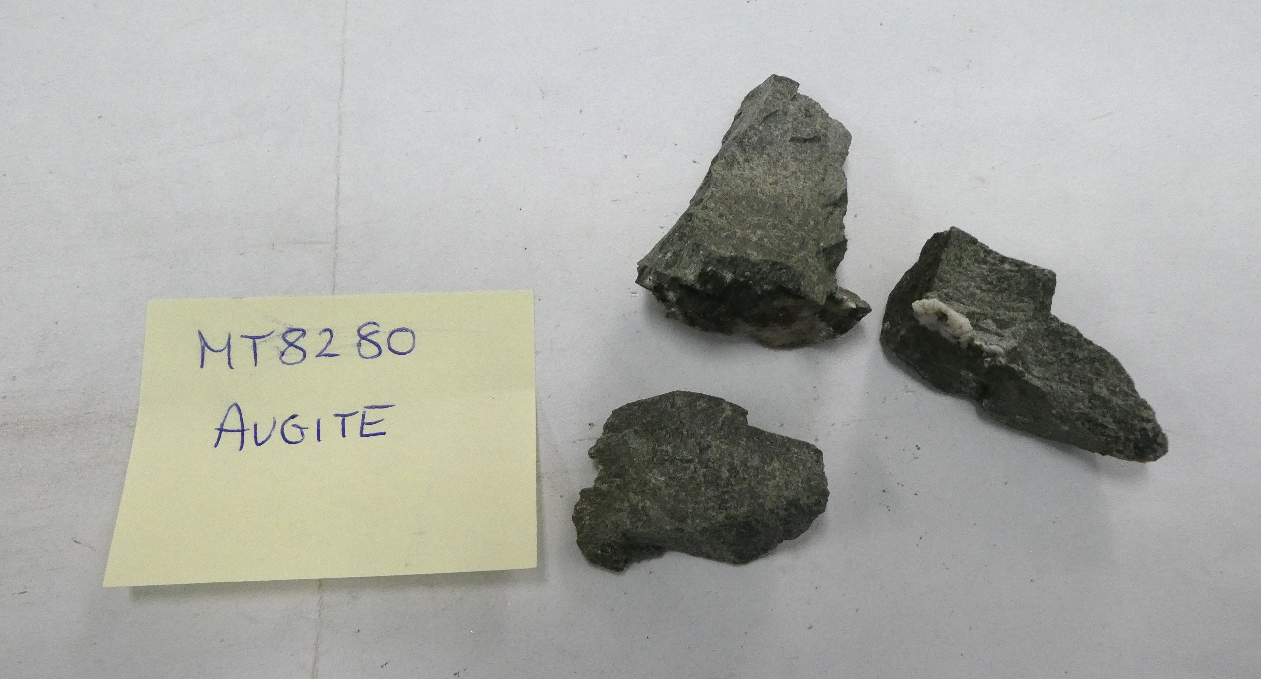 Image of Labradorite, Augite, Diopside (var. Fe2+), Lizardite, Nontronite-15.6A, Quartz, Rhodonite and Tremolite in specimen 'MT8397 Labradorite / Diopside' [CSIRO].