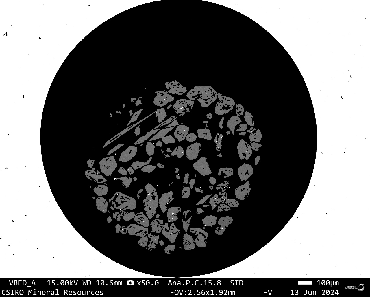 BSE image of Zircon [ZrSiO4] in 'ZrSiO4 Hyper2-31' standard (CSIRO). Instrument: JEOL JSM-IT800.