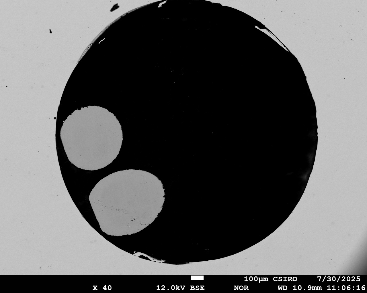 BSE image of Titanium [Ti] in 'Ti METM-8' standard (CSIRO). Instrument: JEOL JXA-8530F. Date: July 2025.
